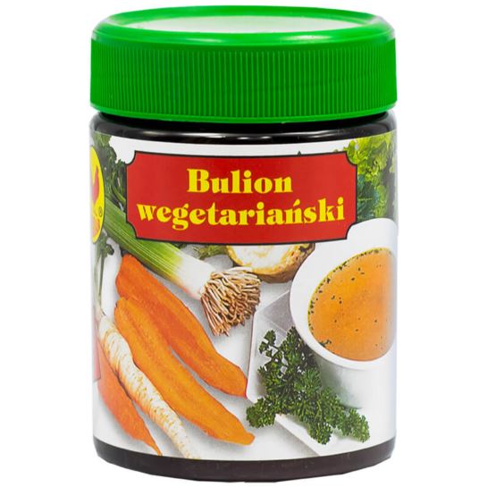 warzywa suszone 12% (marchew, natka pietruszki, liście selera, por, cebula), cukier, olej roślinny – rzepakowy, kurkuma, sól, pieprz czarny, lubczyk liść, aromat naturalny, maltodekstryna (jest to substancja obojętna dla naszego organizmu).