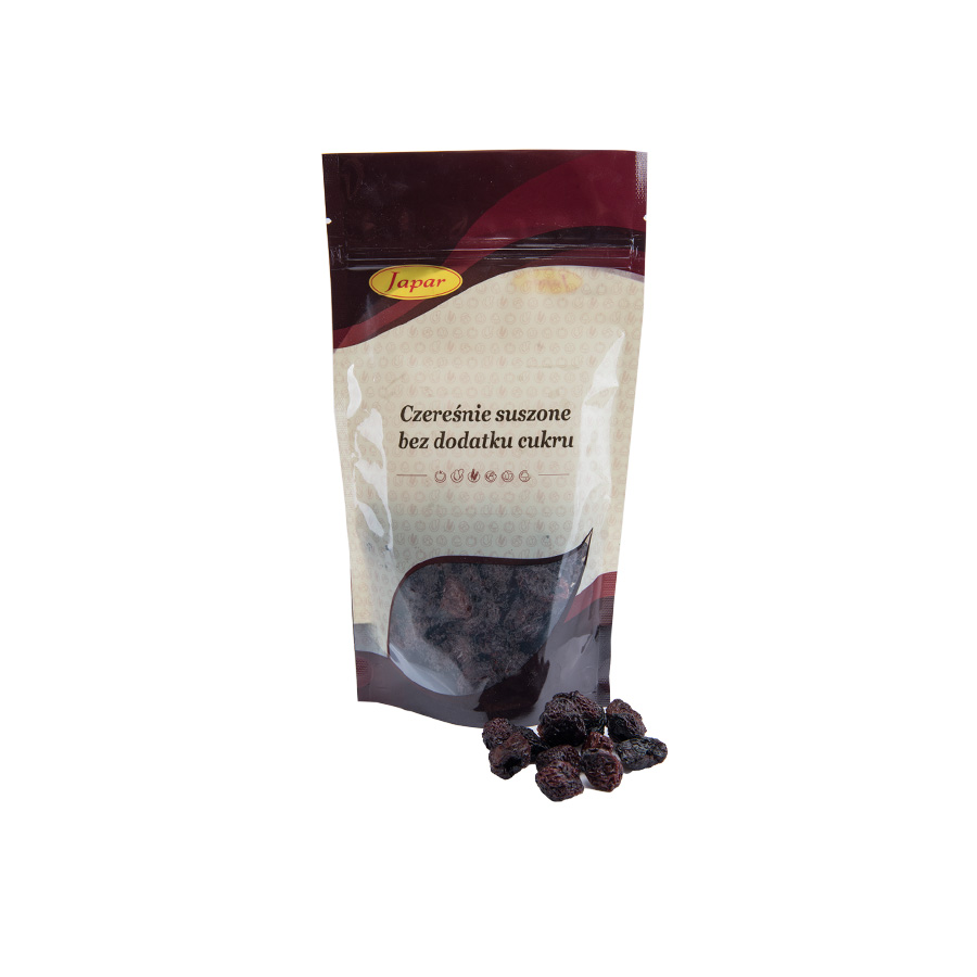 Czereśnie suszone bez dodatku cukru to naturalna, słodka przekąska idealna do deserów, musli i prosto do podjadania. Zachowują pełnię smaku i aromatu owoców.