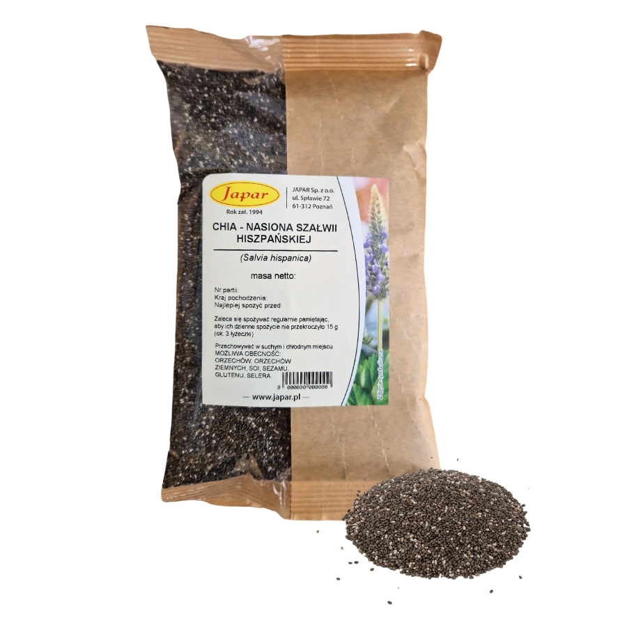 Nasiona chia to superfood cenione za wysoką zawartość błonnika, białka i kwasów omega-3. Idealne do koktajli, jogurtów, puddingów i wypieków. Wspomagają trawienie, sycą i dostarczają cennych składników odżywczych.
